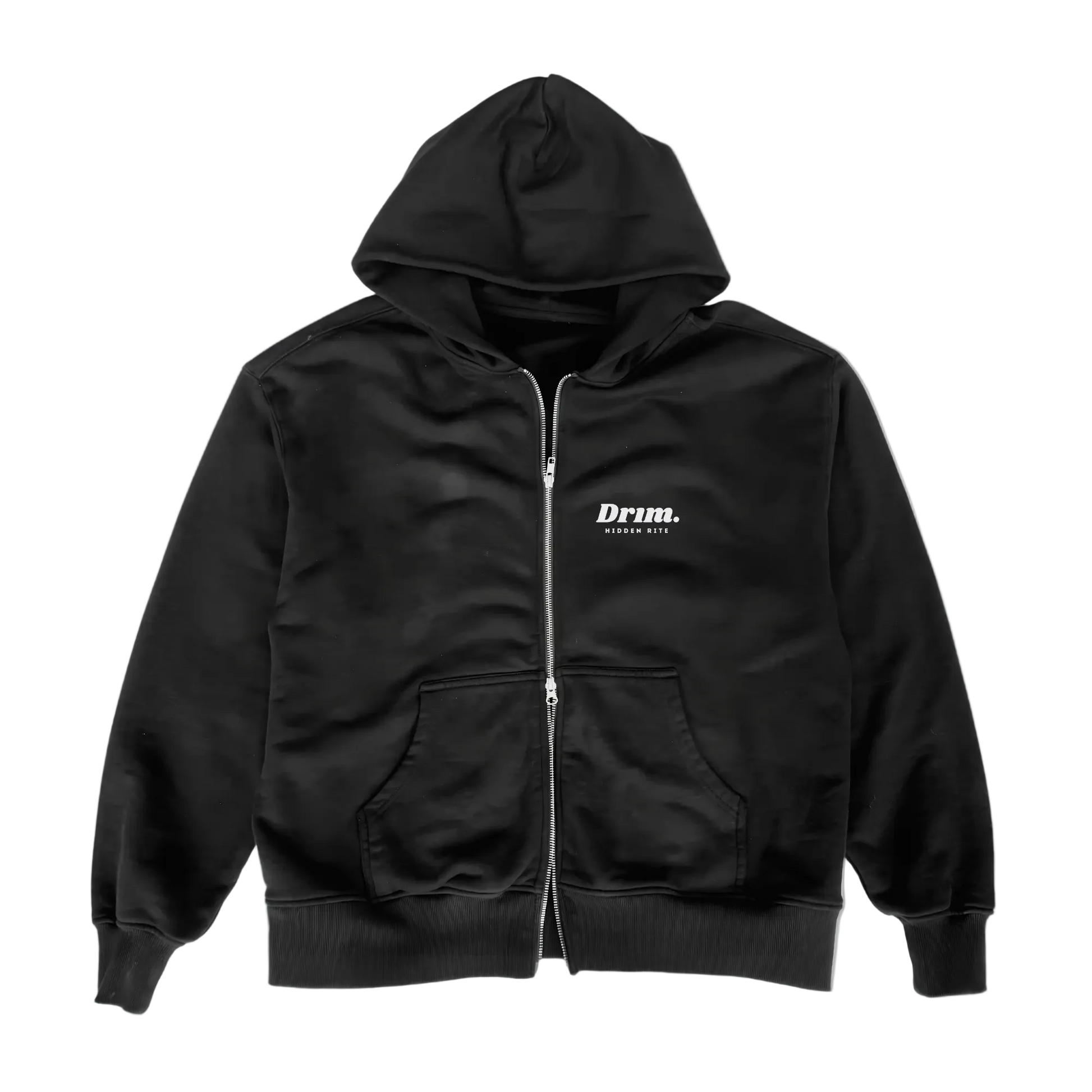 Cut in 12 oz / 406 GSM heavyweight cotton fleece, garment-dyed black, and finished with a double-zip front so it moves with you without losing structure. No drawstrings, no extra noise — just a harder, cleaner version of the uniform.